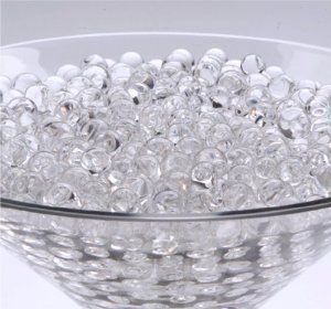 We also carry Crystal water gems are sold in 220 gram bags .They are put into water to grow them to about 3/4″ round and fill up vases to look like crystal pieces. The 220 grams bag will make you enough to fill up approximately 10+ glass vases 24 inch tall and no more that 4 inch round. We only carry the clear gems. Contact us for more information.